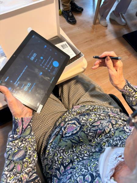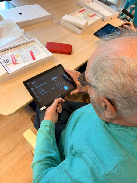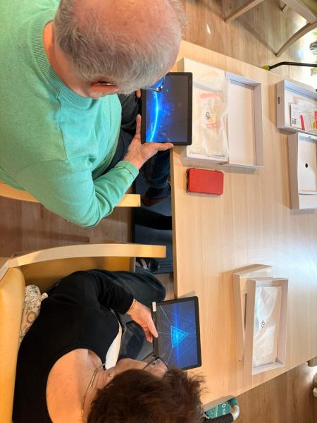Cette séance s'est très bien déroulée, nos résidents ont appris a éteindre et allumer la tablette, la déverrouiller avec un code, faire des photos de leurs voisin.e.s ainsi que d'eux-mêmes.