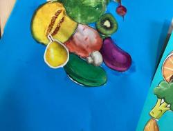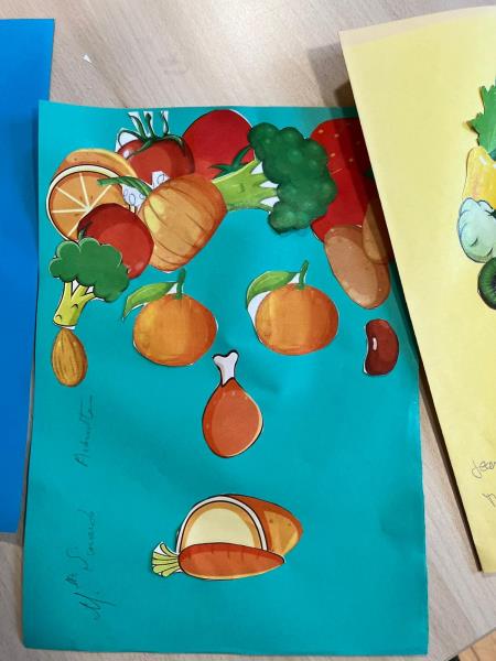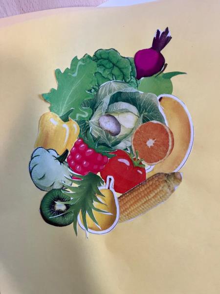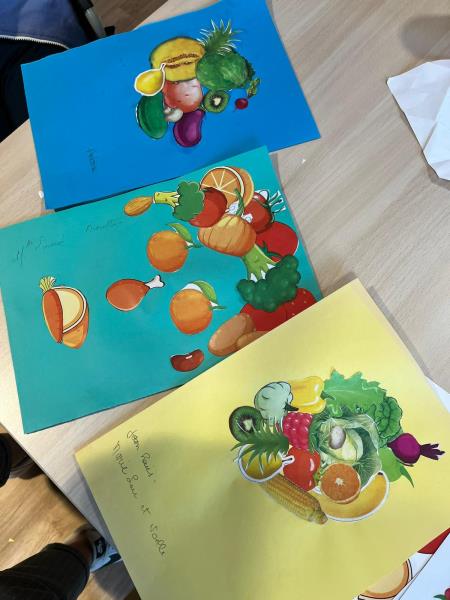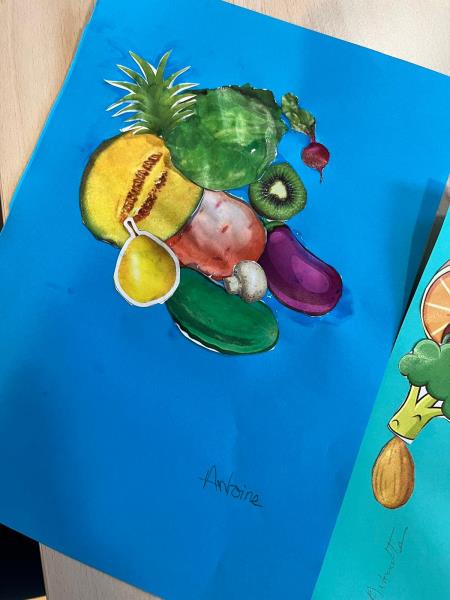Le but était de découper des fruits et des légumes et les coller avec l'inspiration des tableaux de l'artiste.