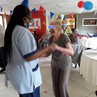 Publiée le 22/07/2021Pour rester dans le thème du 14 juillet, nous avons mis à l'honneur les couleurs de notre drapeau lors de cette fête sur le thème "bal populaire". Les résidents ont pu reprendre en coeur les canons de leur jeunesse, et rejoindre la piste de danse pour les plus téméraires ! Lire la suite