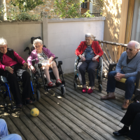 Publiée le 27/04/2021Cet après-midi nous avons changé les habitudes pour aller faire les activités à l'extérieur. Les températures douces de cette journée nous ont permis de prendre place sur la terrasse de la résidence Granger. L'après-midi a débuté avec le jeu du ballon-m&ea [...] Lire la suite